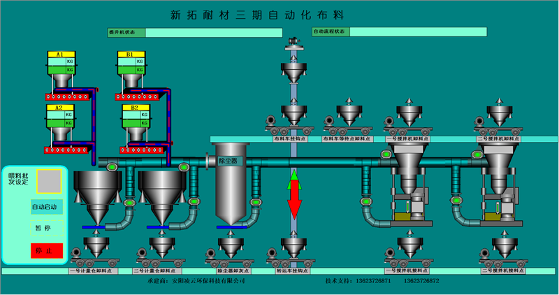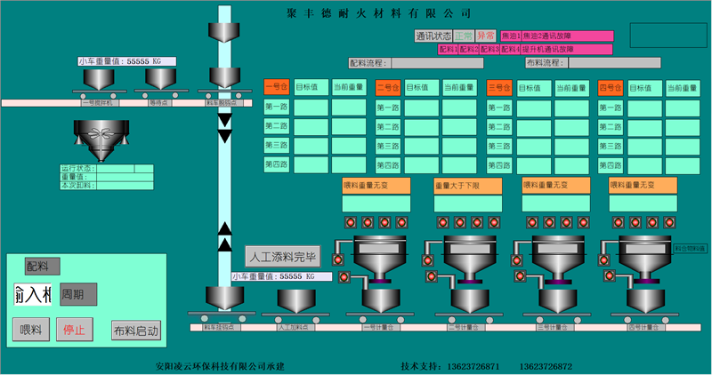 本公司擁有優(yōu)良的生產(chǎn)設(shè)備和技術(shù)開發(fā)團隊,以良好的管理模式,豐富的生產(chǎn)和設(shè)計經(jīng)驗為環(huán)保工作做出了的一定的貢獻。主要針對鋼鐵、耐材等行業(yè)無塵環(huán)保配料工藝的改進,設(shè)計和生產(chǎn)全自動化無塵配料設(shè)備。除塵部分分為:集中式收塵和分散式收塵。計量部分分為:增量計量和減量計量控制模式??刂撇糠址譃椋杭儐纹瑱C控制、單片機加PLC控制、純PLC控制。